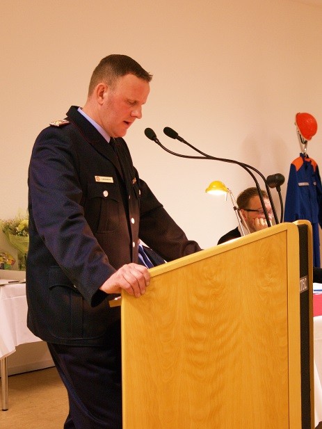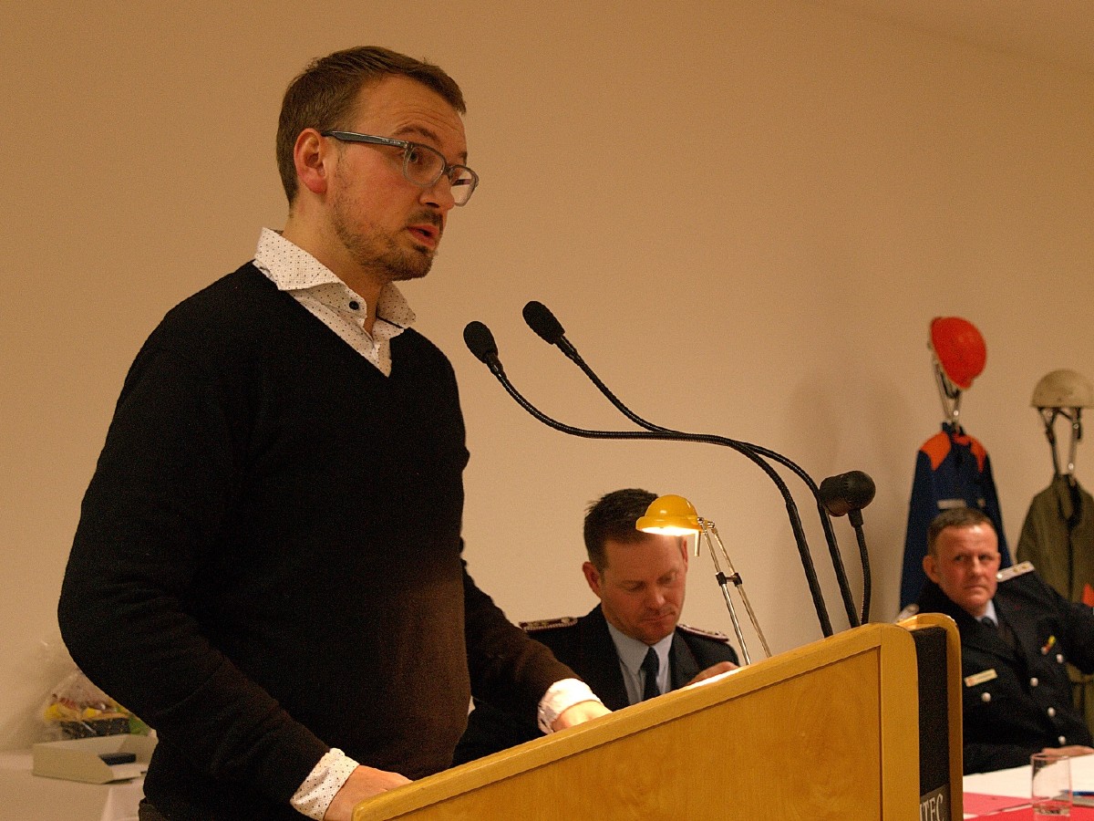 Die letzten Worte hat natürlich der Wehrführer, zuvor richteten aber noch Bürgermeister Stefan Sternberg und die Freie Presse in Person von Ralf Drefin Grußworte an die Anwesenden. |
